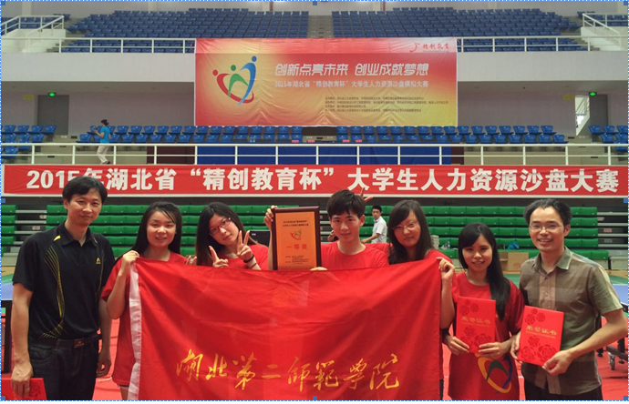 (通讯员:熊丁)2015516-17日,在中南财经政法大学文化艺术中心举行了2015年湖北省“精创教育杯”大学生人力资源沙盘大赛。我院公共事业管理专业的陈磊、夏冬、赵芬芳、丁蔼丽、钟民娟、岑娟等六名同学在指导老师王忠诚、熊丁带领下参加了此次比赛,并获得一等奖。