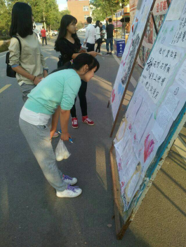 本网讯(企宣部见习记者 李秋悦 薛玲)2015年10月21日,由我院学生会主办,学习部承办的面向管理学院全体学生的书画比赛评选活动在西区食堂门口进行。