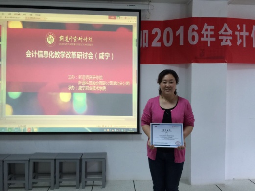 我院财会系李岚老师赴咸宁参加了此次会议及培训。本次研讨会由新道师资研究院主办,咸宁职业技术学院承办,此次会议重点研讨了两个方面的问题: 1. 会计信息系统如何成为会计信息化教学改革课程级抓手? 2. 如何利用会计信息化平台建立会计信息化教学资源?