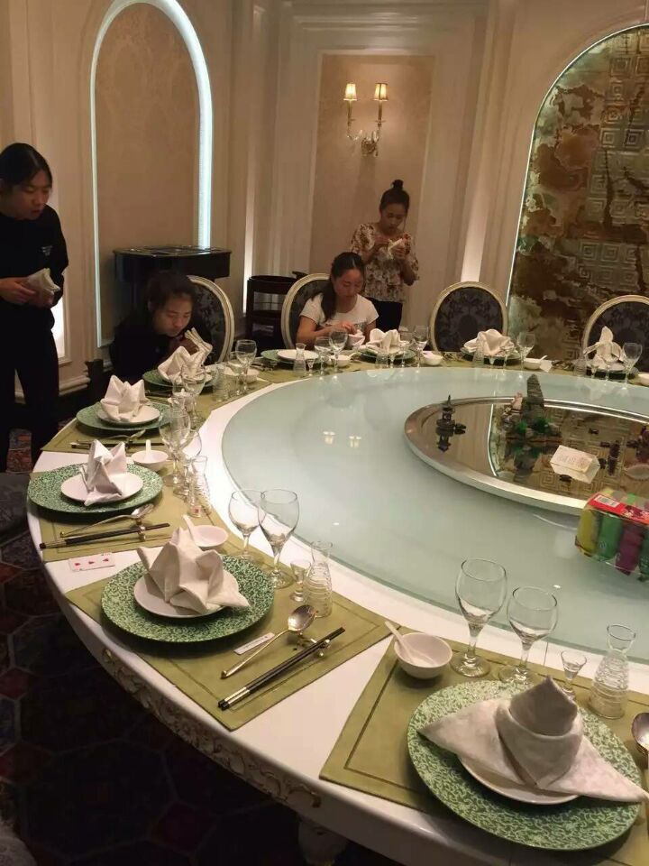 中餐厅的学习,也以讲授和实操为主。从最简单的站姿礼仪到迎客问客;从餐巾折花到餐位摆台;从拉椅让座到起身送客;从点餐推荐到上菜巡台;经理讲解面面俱到。之后还开展了一个有奖相赠的小活动,同学们都热情踊跃参加,有的同学获奖而归,满是欢喜。