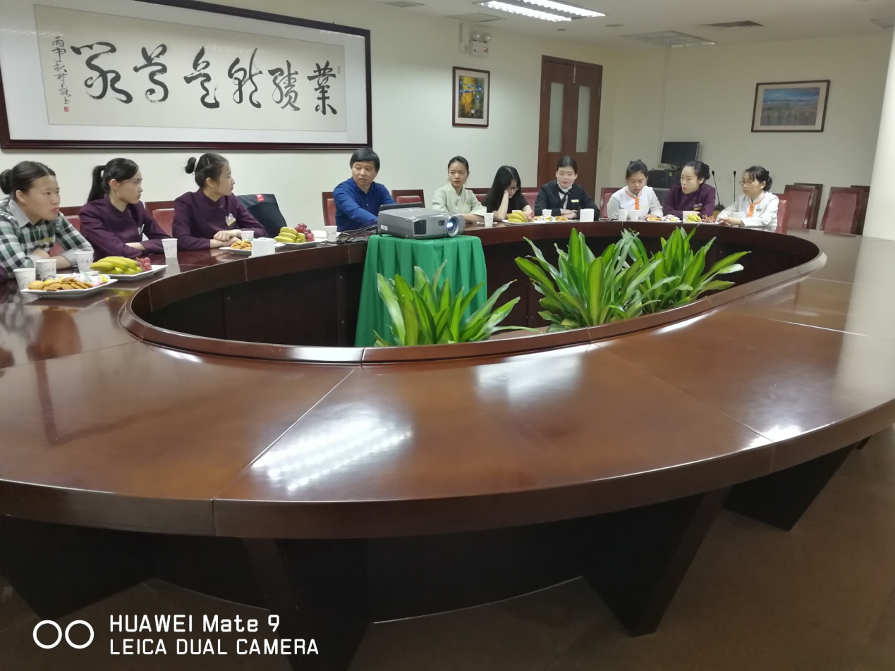 戴正华到达酒店当天,就走访了当天在岗的所有学生,询问了实习情况,参观学生工作地点、员工食堂、宿舍与周边环境。与全体学生进行了座谈,了解学生实习3个月中的问题和收获。前台部的夏丽芳同学向学院表达了感谢之情,感谢学院领导专程看望实习在外的学生;西餐的姚秋荣同学为老师们介绍了她的工作环境。看到学生在实习酒店工作学习愉快,同学之间关系融洽,遇到问题相互关心和主动帮助,得非常开心时,戴书记显得非常高兴,勉励大家抓住实习机会,注重实践积累,努力提高自己自身修养,为今后的职业生涯打好基础。