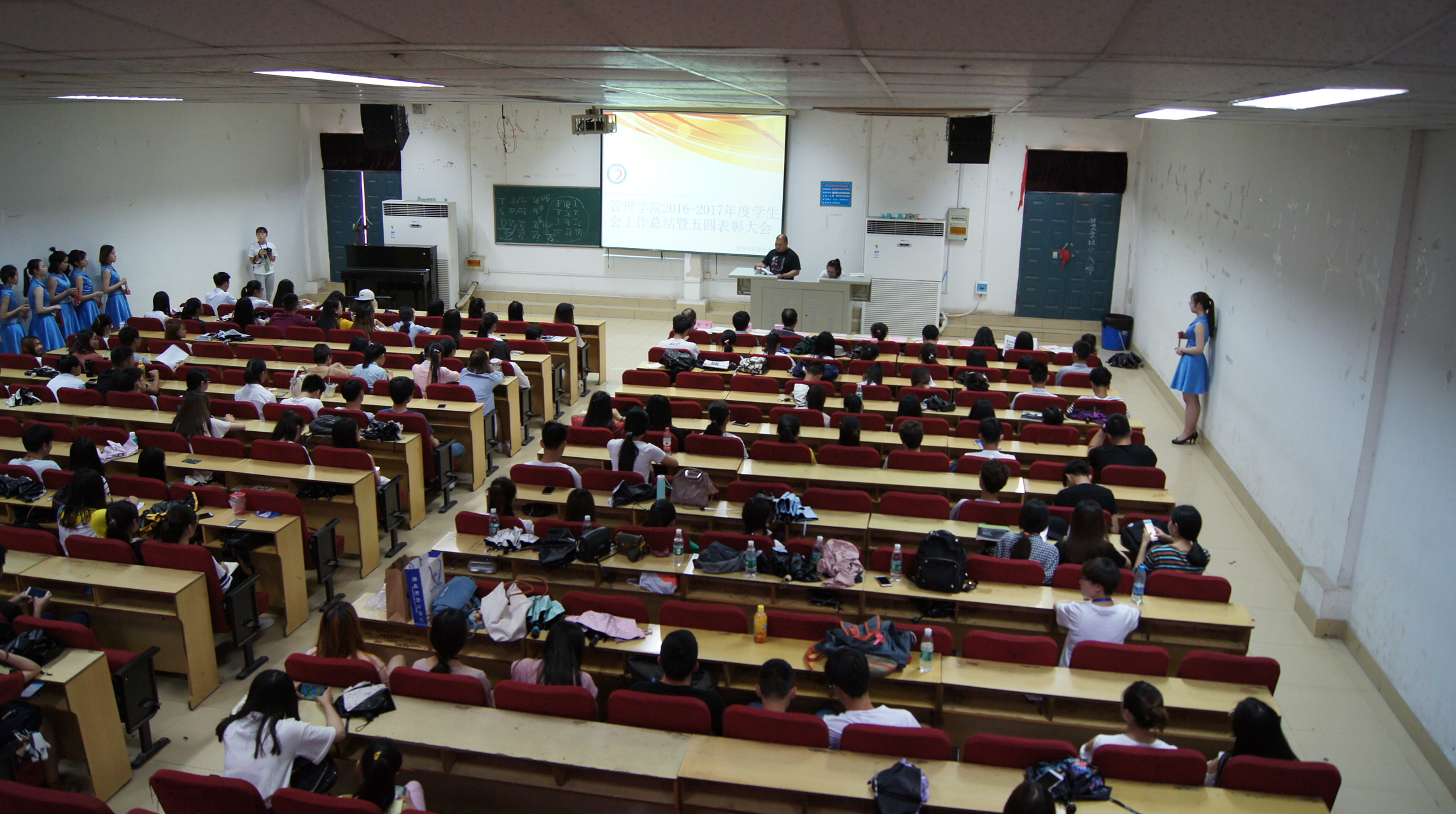 本网讯(企宣部记者 胡晓丽)为庆祝中国共青团成立95周年,弘扬五四精神,表彰先进,树立模范,加强我院分团委、学生会凝聚力、提高工作效率,创造良好的学院风气,5月18日中午12时30分,学院分团委在旧图书馆三号报告厅隆重举行了2016-2017年管理学院学生会年度总结暨五四表彰大会。学院分团委委员、学生会第二届全体成员、各班团支部书记、班长参加会议。学院院长夏仕平、党总支书记戴正华、党总支副书记宋平、分团委书记魏豪、全体辅导员出席了本次大会。大会由学院分团委书记魏豪主持。