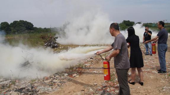 宋平、袁勇和杨兰芳一直鼓励大家特别是女生,勇敢的尝试灭火,学会正确使用灭火器。