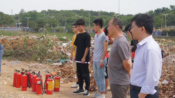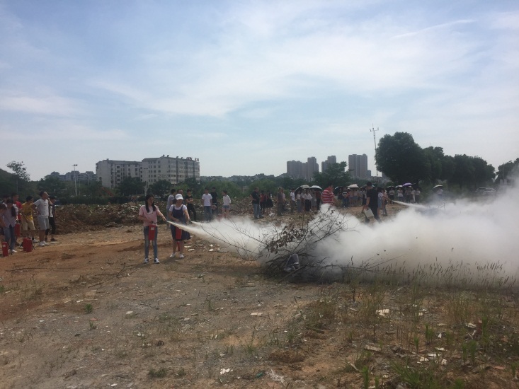 活动开始,首先伍明同志给同学们讲解了当火灾发生时如何逃生、自救,如何正确使用灭火器材。随后,全体成员到达已经架好木堆的空地上,做预备灭火工作。大火燃起,热浪滚滚,夏院长、宋书记身先士卒,带头操起灭火器,直奔火场。
