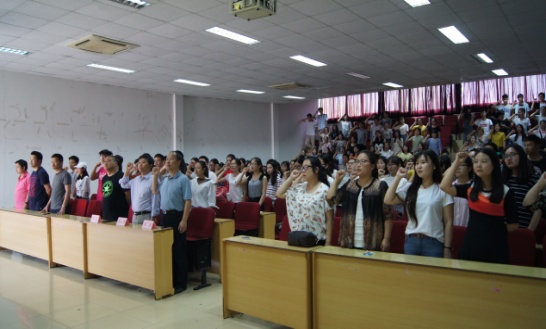 全体参加2017年暑期社会实践活动的同学在秦磊同学的带领下,进行了出征宣誓:“我自愿参加湖北第二师范学院暑期社会实践活动,体验生活,锻炼自我,服务他人,奉献社会,坚决服从团队指挥,自觉遵守团队纪律,时刻注意自身言行,自觉维护学生形象。以最积极的心态,最饱满的热情,认真完成各项实践任务。用青春演绎精彩,用成绩回报社会。”