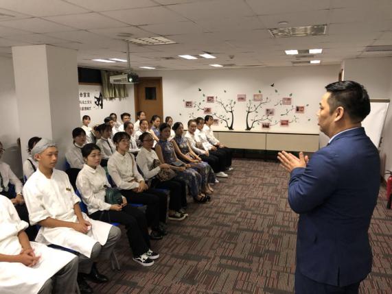 9月18日下午,华美达酒店为了能给参加武汉网球公开赛的队员和观众提供更优质的餐饮服务,特为17级酒店本科班同学举办了一场培训活动。培训主要分为三个部分,第一部分是由酒店负责人向酒店班的同学介绍WTA(武汉网球公开赛)的基本情况,在问答与交流中,同学们对WTA(武汉网球公开赛)有了一定了解;第二,华美达消防总监向同学们介绍有关于消防与人员疏散等安全应急问题,通过同学们对消防器材的使用体验,来加强大家对于场馆安全问题的重视与了解;最后,华美达酒店人力资源部经理指出,酒店班的同学主要负责场馆内VIP客人的接待工作,他对服务质量应达到的标准以及需要注意的问题都提出了详细的要求。