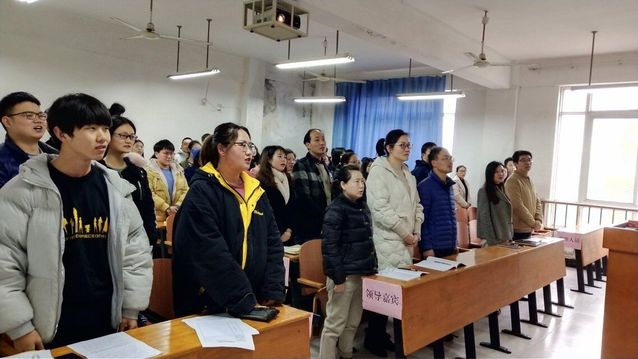 3月5日下午,师生一起聆听李克强总理的政府工作报告