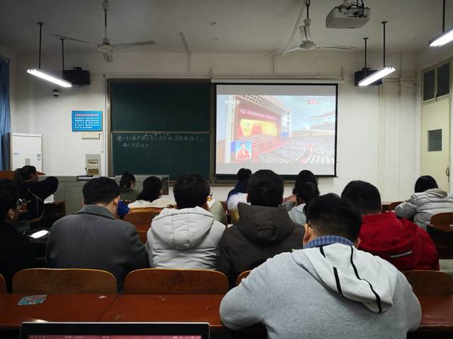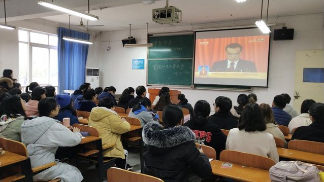 3月5日上午,师生一起收看全国人大十三届二次会议开幕式