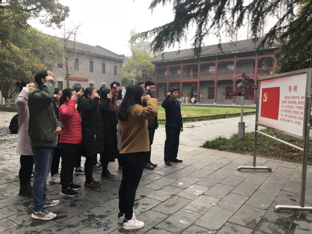 本网讯(通讯员 吴文静)2019年3月28日下午1时,管理学院行政支部、学生支部在校学生党员参观了中共五大会址纪念馆。本次活动以“重温党史、坚定信念”为主题,开展了追溯红色历史进程、重温历史伟人情怀的党日活动。党总支书记戴正华、党总支副书记刘兴、行政支部书记吴文娟、学生党支部书记施晴等25人参加了本次活动。