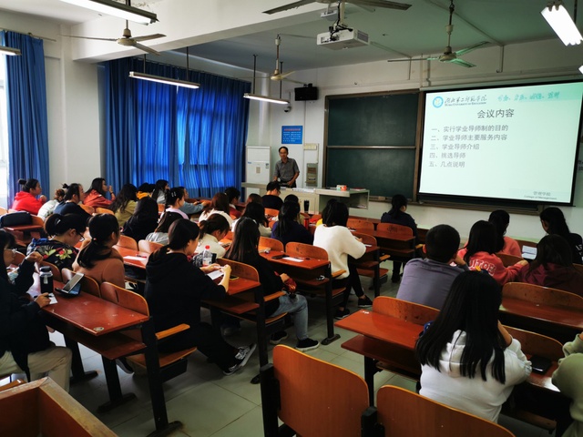 熊丁主任介绍实行学业导师,目的就是为了让老师更多、更有针对性地为学生提供指导和服务,为学生成长成才提供更多帮助。实行学业导师制,进一步明确了老师的服务对象和责任,会推动师生更好地进行沟通交流,增进师生情谊。他从学业指导、生活帮助、考研与考公务员、就业与创业、思想引导等多方面介绍了学业导师工作的主要内容,介绍了全系各位老师的情况和学生选导师的方式。最后,熊丁主任强调:第一,为了保证学业导师制落到实处,每位老师指导的人数有限定;二是,确定导师后,学生与导师之间的交流本着以指定为主,但同学和老师之间可以发挥特长相互交流、互相帮助。