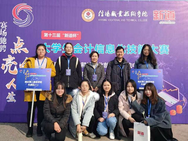 (通讯员:管新)近日,第十三届“新道杯”全国大学生会计信息化技能大赛总决赛在信阳职业技术学院举行。由我校管理学院财务管理专业8名学生组成的两支代表队分别参加了信息化竞赛和管理会计竞赛两个环节的比赛。