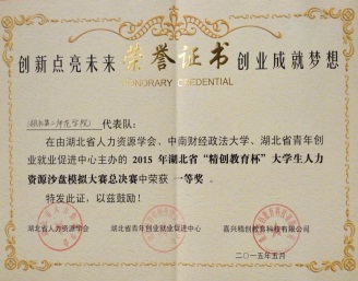 2015年湖北省“精创教育杯”大学生人力资源沙盘模拟大赛一等奖