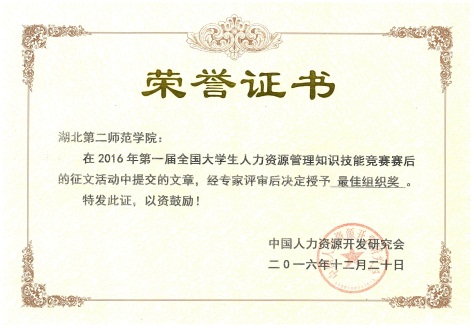 2016年第一届全国大学生人力资源管理知识技能竞赛最佳组织奖