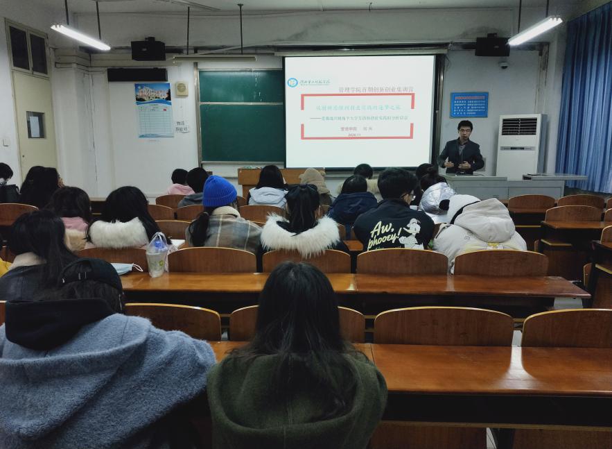 为进一步激发同学们的创业热情,引导同学们深入了解创新创业知识,培养大家的创新精神和创业意识,提高创新创业能力,2020年11月24日18时15分,管理学院双创训练营在2号教学楼2410举办了“从创新思维到创业实践的逐梦之旅”讲座。本次讲座由管理学院党委副书记、“创青春”、“挑战杯”大学生创业大赛国家级、省级金奖指导老师刘兴主持主讲,他从竞赛组织视角给同学们带来了大学生创新创业实践的启发。