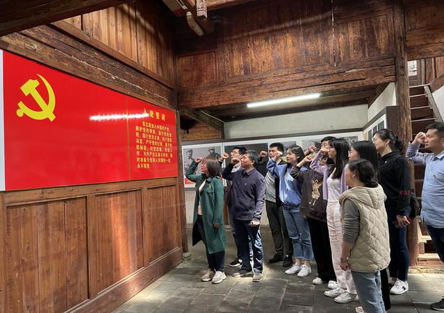 在红二军团部旧址,全体党员仔细阅读了“红军街”的历史介绍,认真参观了革命战争时期的遗址,缅怀了红军的丰功伟绩,全体党员在杨兰芳同志的带领下,重温入党誓词,以铮铮誓言表达向革命先烈学习的决心、坚守忠诚于党的初心和不懈为党的教育事业奋斗终身的决心。