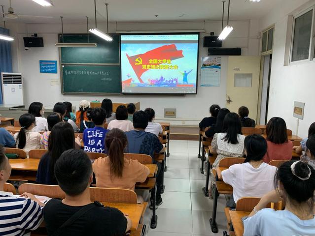 本网讯(通讯员何雯洁)为深入学习贯彻习近平总书记在党史学习教育动员大会上的重要讲话精神,推动广大学生党员深入、生动地开展党史学习教育,2021年6月9日20时,管理学院学生党支部在2302和2304教室组织入党积极分子、学生党员集中观看学习《全国大学生党史知识竞答大会》。