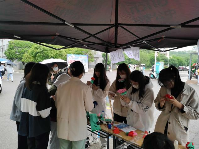 本网讯(通讯员孙婷婷)繁花五月,母爱芬芳。母亲节来临前夕,4月30日,管理学院大学生心理健康协会在东区食堂门口摆点,开展“以爱为名,献礼母亲”的手工花束制作活动,呼吁广大同学将浓浓的感恩之情注入手中的纸和剪,用亲手制作而成的花束,献礼母亲,歌颂母爱。