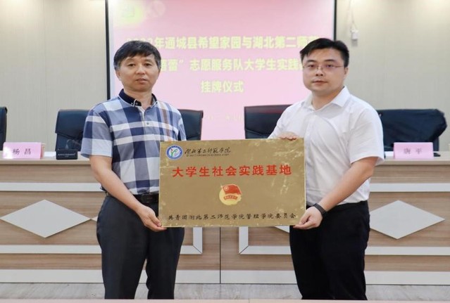 随后,杨昌与戴正华共同为湖北第二师范学院管理学院大学生社会基地揭牌。