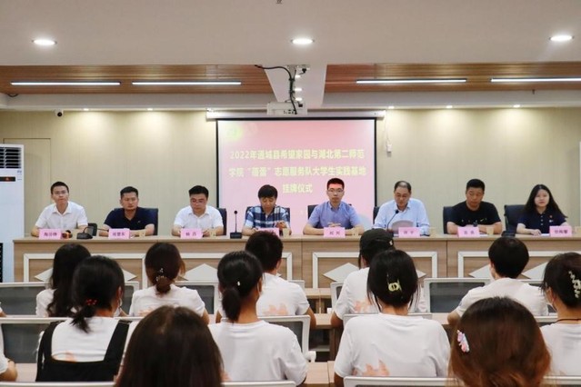 (通讯员:管新、徐梅馨)7月29日上午,湖北第二师范学院管理学院2022年赴通城县暑期“三下乡”志愿服务活动总结汇报会暨大学生社会实践基地挂牌仪式在通城县人才家园会议室举行。通城县委常委、组织部长杨昌出席活动并讲话,通城县政府副县长刘长青会见管理学院党委书记戴正华一行。通城县政府副县长唐平主持会议及挂牌仪式。