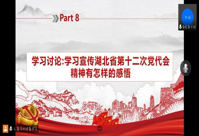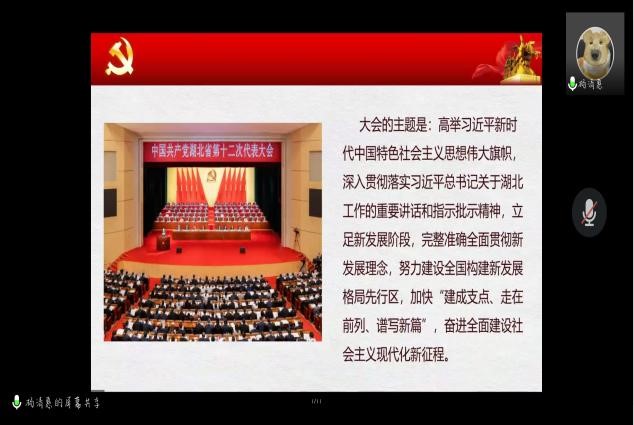 随后,领学人杨清惠带领全体党员学习了王蒙徽在中国共产党湖北省第十二次代表大会上的报告。深入贯彻落实习近平总书记关于湖北工作的重要讲话和指示批示精神,立足岗位、争创佳绩、喜迎党的二十大。作为新时代党员,我们须锚定新赛道,展现新作为。坚定不移沿着习近平总书记指引的方向前进,牢记嘱托、不负使命,干在实处、走在前列。