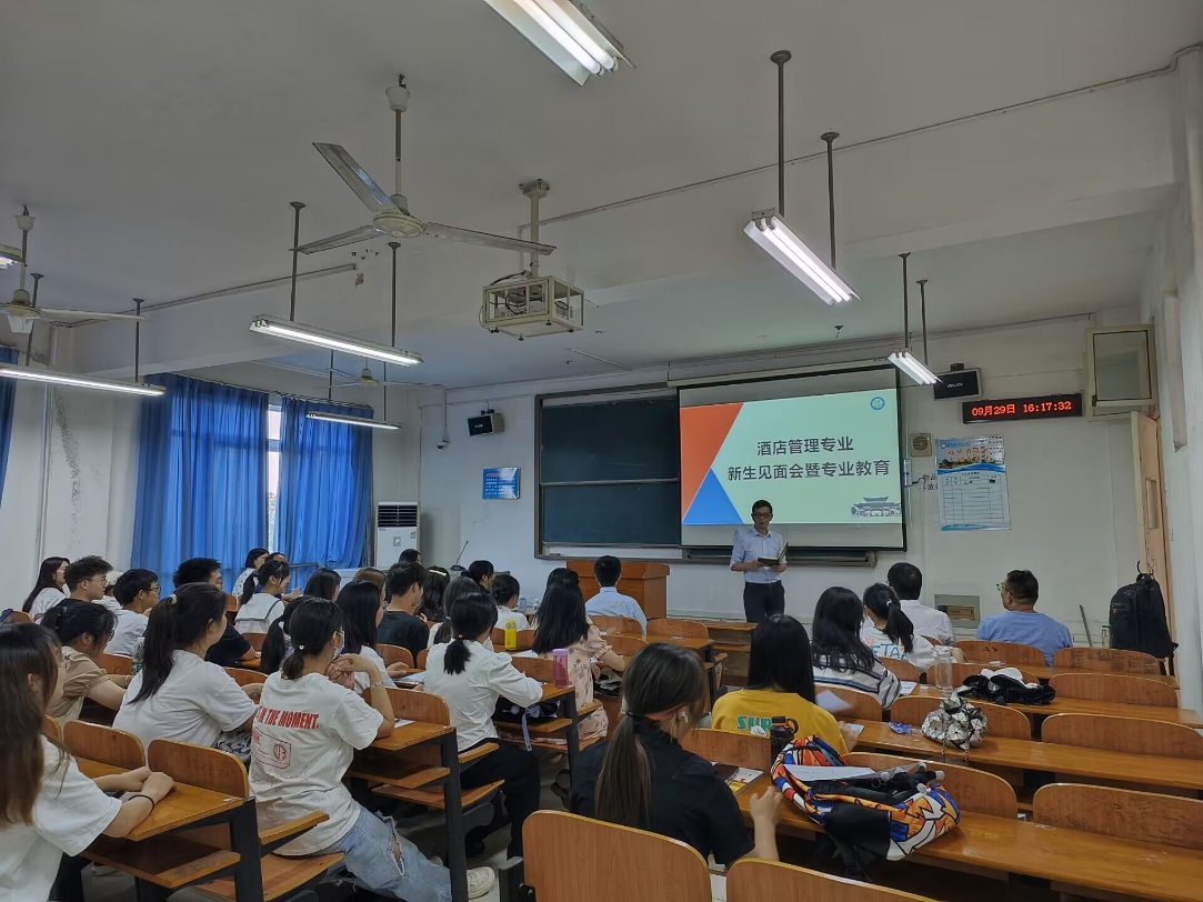 本网讯(通讯员:李丽霞)2022年9月29日下午,2号教学楼2311教室气氛活跃,热闹非凡,管理学院领导班子部分成员和旅游与酒店管理系全体教师一起,与2022级酒店管理2班(专升本)和2022级酒店管理1班的新生们分别举办了别开生面的新生见面会。