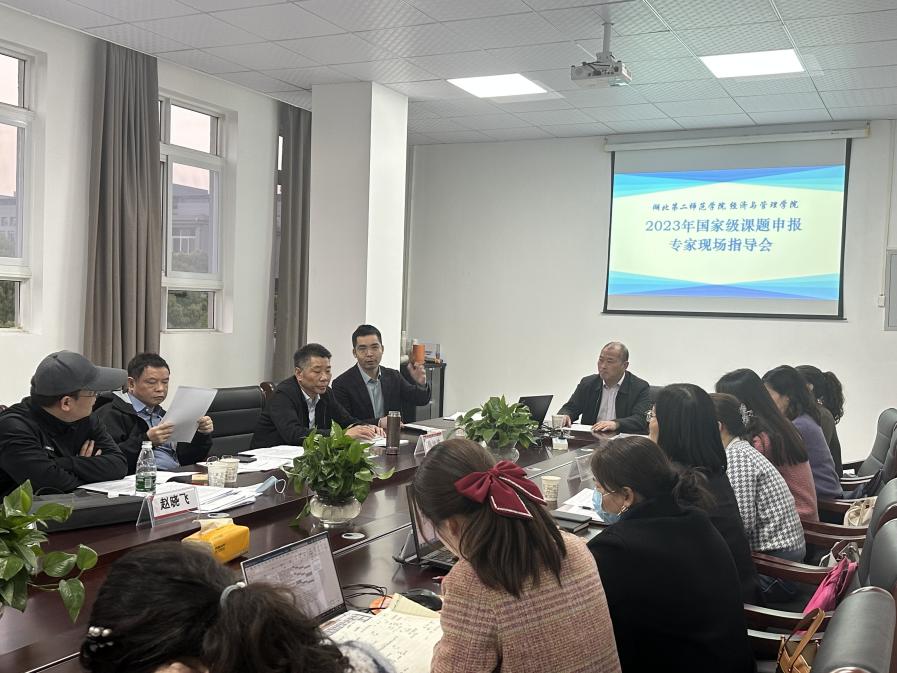 本网讯(通讯员 常静)2023年4月8日下午,经济与管理学院(以下简称经管学院)在2号楼5楼会议室召开了2023年度国家社科基金项目及教育部人文社科项目申报专家指导会,校长郑军教授、经管学院院长陈池波教授、华中农业大学经济管理学院罗小锋教授、中南民族大学管理学院赵晓飞教授、中南财经政法大学工商管理学院田云副教授受邀担任基金项目申报现场指导专家,12位基金项目申报教师参加会议,会议由副院长常静主持。
