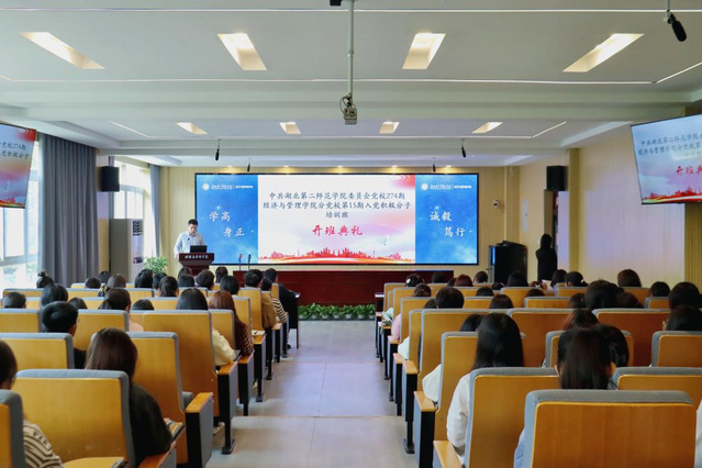本网讯(通讯员 席中刚 张馨元)3月9日下午,中共湖北第二师范学院委员会党校274期、经济与管理学院分党校第15期入党积极分子培训班开班典礼在二号教学楼多功能报告厅顺利举行。经济与管理学院党委副书记李京、组织员李晓华、学生第一党支部书记王琪、学生第三党支部书记徐梅馨出席本次典礼,学生党支部全体支委及本期培训班全体学员参加。典礼由学生第二党支部书记席中刚主持。