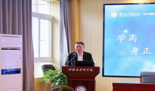 本网讯(通讯员 张珺 黄飘)4月6号下午,经济与管理学院于二号楼三楼多功能报告厅召开全体教职工大会暨本科教育教学审核评估动员会。经济与管理学院党委书记刘元锋,院长陈池波,党委副书记李京,副院长陈艳明、常静、蔡璐,院长助理刘爱君以及全体教职工参会。会议由刘元锋主持。