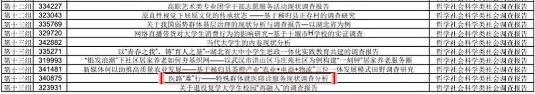 本网讯(通讯员 张珺)近日,共青团湖北省委公布了湖北省第十四届“挑战杯·中国银行”大学生课外学术科技作品竞赛获奖名单。我院刘旺霞老师指导、陈池波院长和刘爱君老师推荐的由21国贸2班周珈仪、方谨、邢娜、赵锦慧四位同学组成的国际经济与贸易专业代表队作品《医路“难”行——特殊群体就医陪诊服务现状调查分析》获得挑战杯省级三等奖。