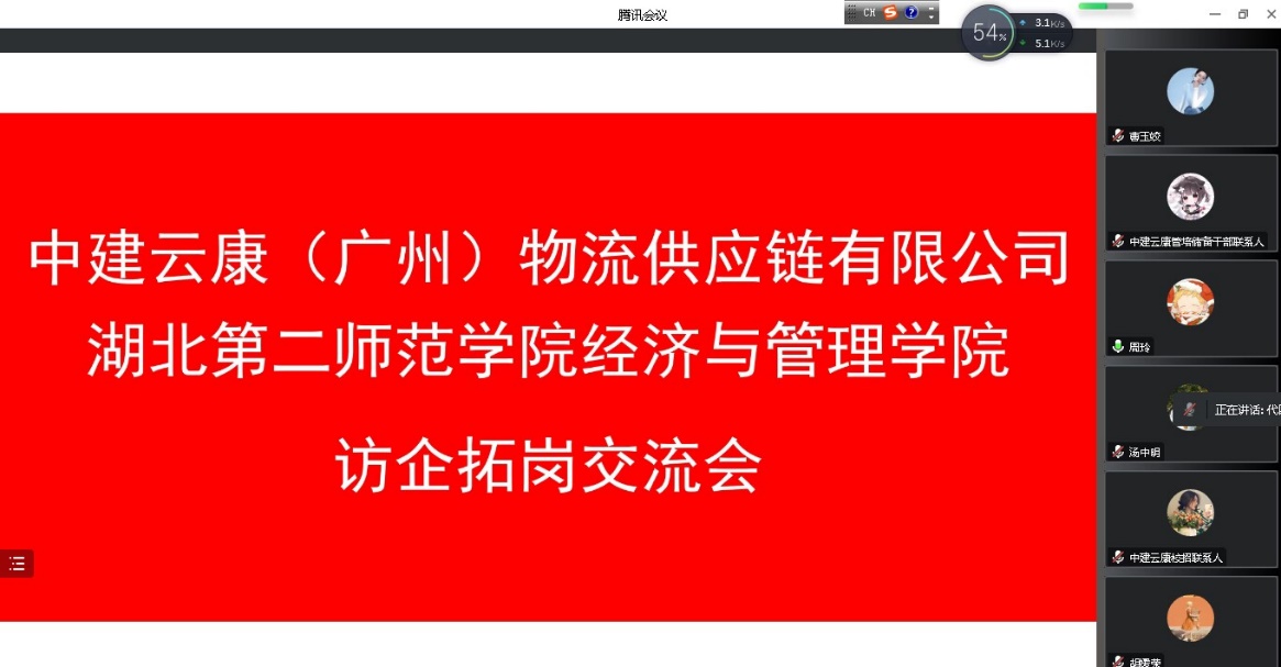 此外,在本次“访企拓岗”促就业专项活动中,物流系还与中建云康(广州)物流供应链有限公司与武汉青山宝湾国际物流有限公司分别进行了线上视频交流,并与以上公司达成合作。