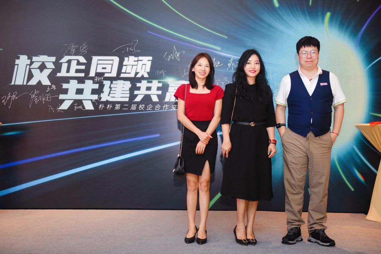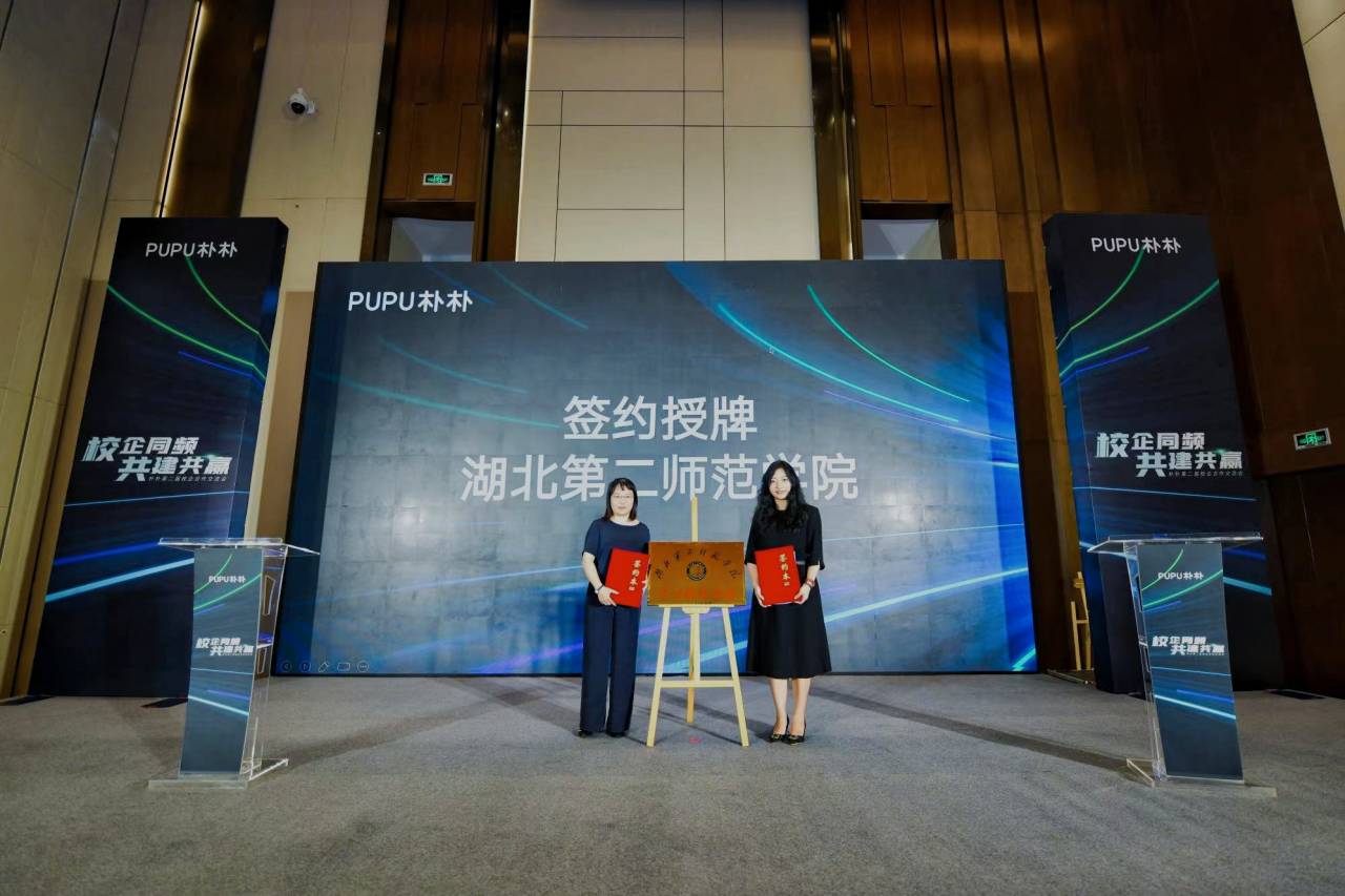 15点,交流会进入到签约授牌阶段,湖北第二师范学院是第一个签约的高校。蔡璐副院长作为二师代表,上台与朴朴驻武汉分公司的HR互签协议,并完成授牌仪式。
