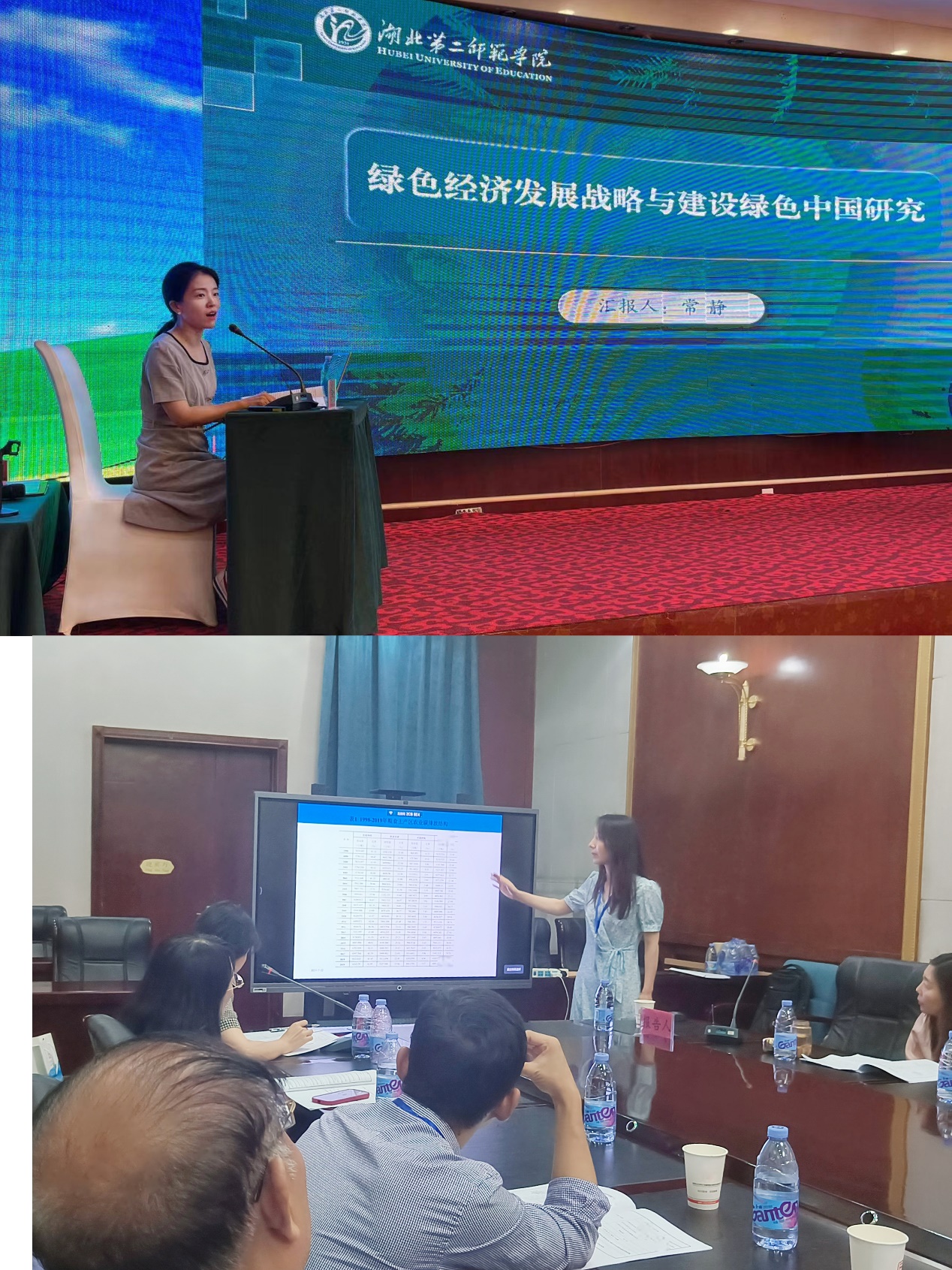 我校乡村振兴研究中心教师全面参与论坛的各个环节,并发出中国生态经济建设的“二师声音”。经济与管理学院副院长常静副教授在第一分论坛做了题为“绿色经济发展战略与建设绿色中国研究”的报告,乡村振兴研究中心执行主任贺青教授在第二分论坛做了题为“粮食主产区农业碳排放的动态演进及驱动因素研究”的主旨发言。