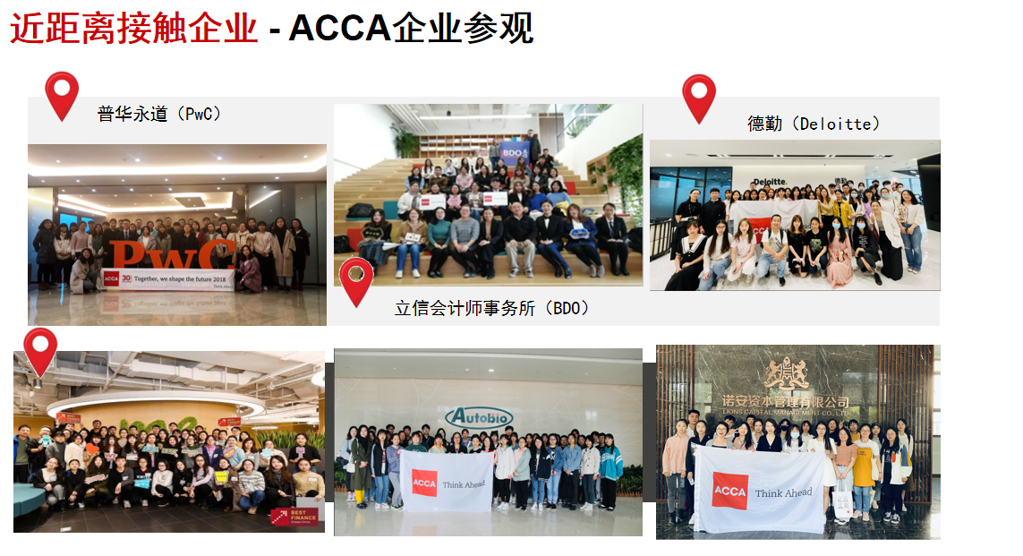 ACCA旨在帮助会员、学员在财会行业及商界建立成功的职业生涯。全球7828家认可雇主(中国内地超过500家)通过领先的专业资格和资源,专门打造针对财会金融人才的精准招聘平台,建立汇集全球ACCA会员和学员的巨大人才库,满足企业对不同财会金融人才的需求。经管学院会联合ACCA协会为财务管理(ACCA方向班)学生优先提供实习、就业机会。