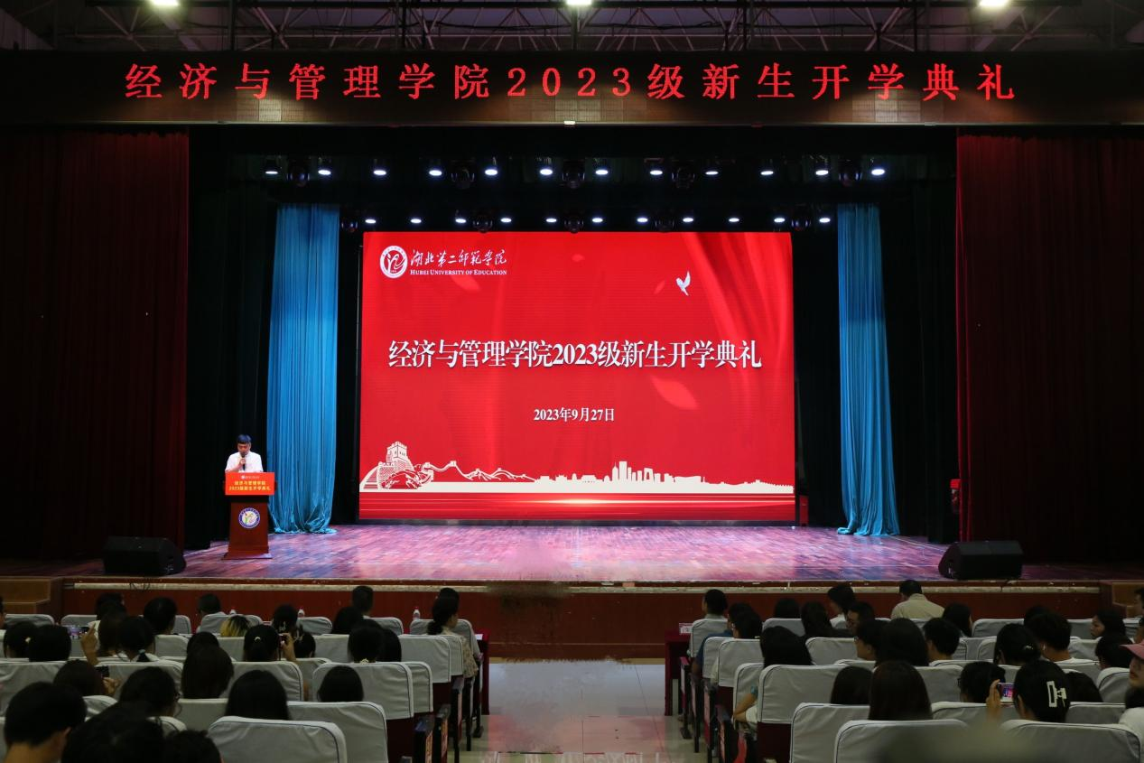 本网讯(通讯员 黄飘 江俊豪)9月27日晚,经济与管理学院2023级新生开学典礼在学校大礼堂举行。校党委常委、副校长陈勇出席,学工部部长文敏、审计处处长蔡彬,经济与管理学院院长陈池波、副院长陈艳明、常静、蔡璐、院长助理刘爱君,各系办主任、教师代表、全体辅导员及2023级全体新生参加活动。经济与管理学院党委副书记李京主持活动。