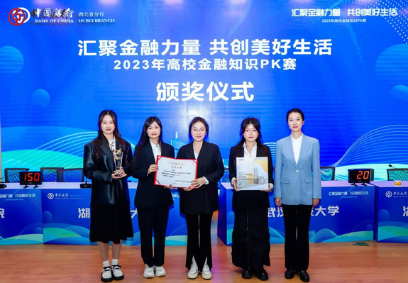 本网讯(通讯员 杨紫旋)近日,由团湖北省委、中国银行湖北省分行主办的“汇聚金融力量,共创美好生活”2023年高校金融知识PK赛在武汉理工大学举行。我院参赛队伍获一等奖,团省委副书记陈立为其颁奖。