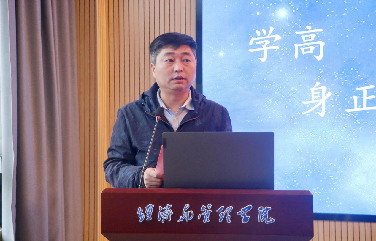 经管院党委副书记李京作闭幕式讲话,他代表学院党委对大会的顺利召开表示祝贺、对学院团学干部的奉献表示感谢,希望学生会能继续以饱满的热情、踏实严谨的态度,认真对待工作,坚定不移地走下去,共同谱写学生会未来的新篇章。
