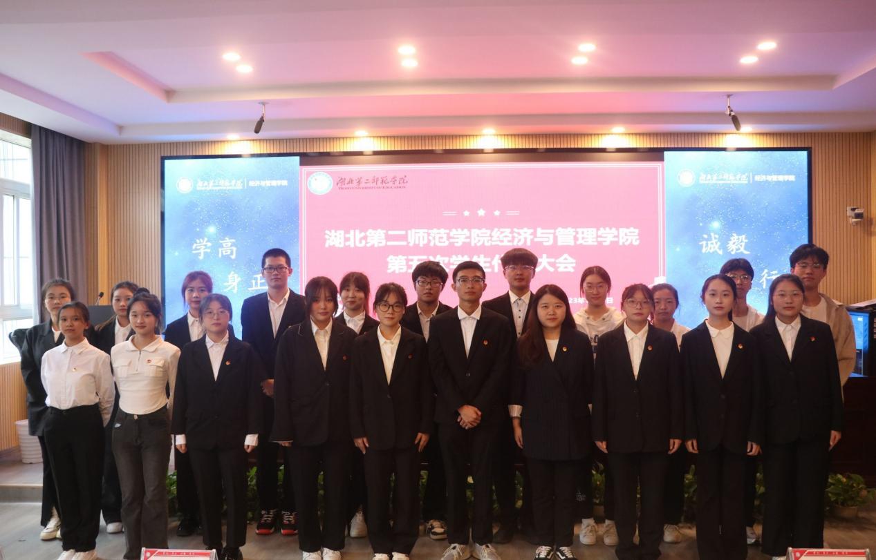本网讯(通讯员 谭芳)10月7日下午,湖北第二师范学院经济与管理学院(以下简称经管学院)第五次学生代表大会在2号教学楼三楼报告厅举行。经管学院党委书记刘元锋,党委副书记李京,分团委负责人徐梅馨,校学生会主席团代表周梦焓,第八届学生会执行主席龚安宇作为特邀代表出席。会议由办公室陈姗姗主持。
