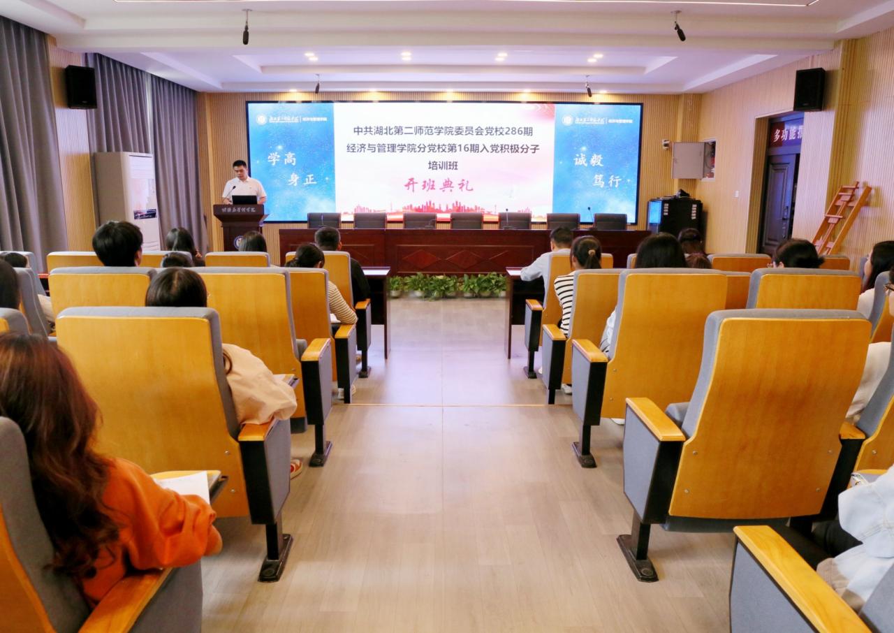 本讯网(通讯员 程诗 方红)10月19日下午,中共湖北第二师范学院委员会党校286期、经济与管理学院分党校第16期入党积极分子培训班开班典礼在二号教学楼三楼多功能报告厅举行。经济与管理学院党委副书记李京、组织员李晓华、各学生党支部委员及培训班全体学员参加活动。典礼由学生第二党支部书记席中刚主持。