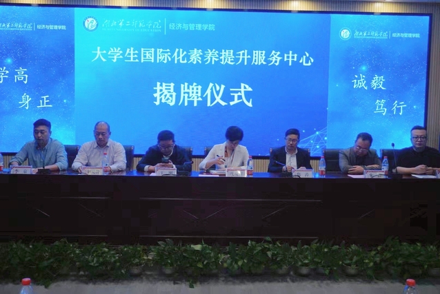 本网讯(通讯员 徐昌海 罗心怡)10月20日下午,湖北第二师范学院大学生国际化素养提升服务中心在经济与管理学院(以下简称经管学院)三楼多功能报告厅正式揭牌成立。武汉风向标教育培训中心总经理郑涛、美国东北州立大学(NSU)校方代表朱波、英国伯明翰大学学院(UCB)校方代表管宋君受邀参加活动。仪式由经管学院党委副书记李京主持。
