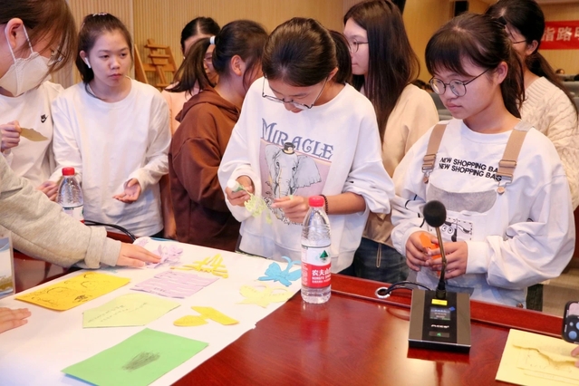 最后到了集体剪卡纸。在这个环节当中,同学们都充分发挥自己天马行空的想象力,有借着校园中的枫叶徐徐落下的美,有对未来生活畅想的梦,还有着对孩童时光恍恍惚惚的回忆。这些形色各异的卡片,汇成了一幅五彩斑斓的画卷,它携带着同学们对未来大学生活的期待与憧憬。