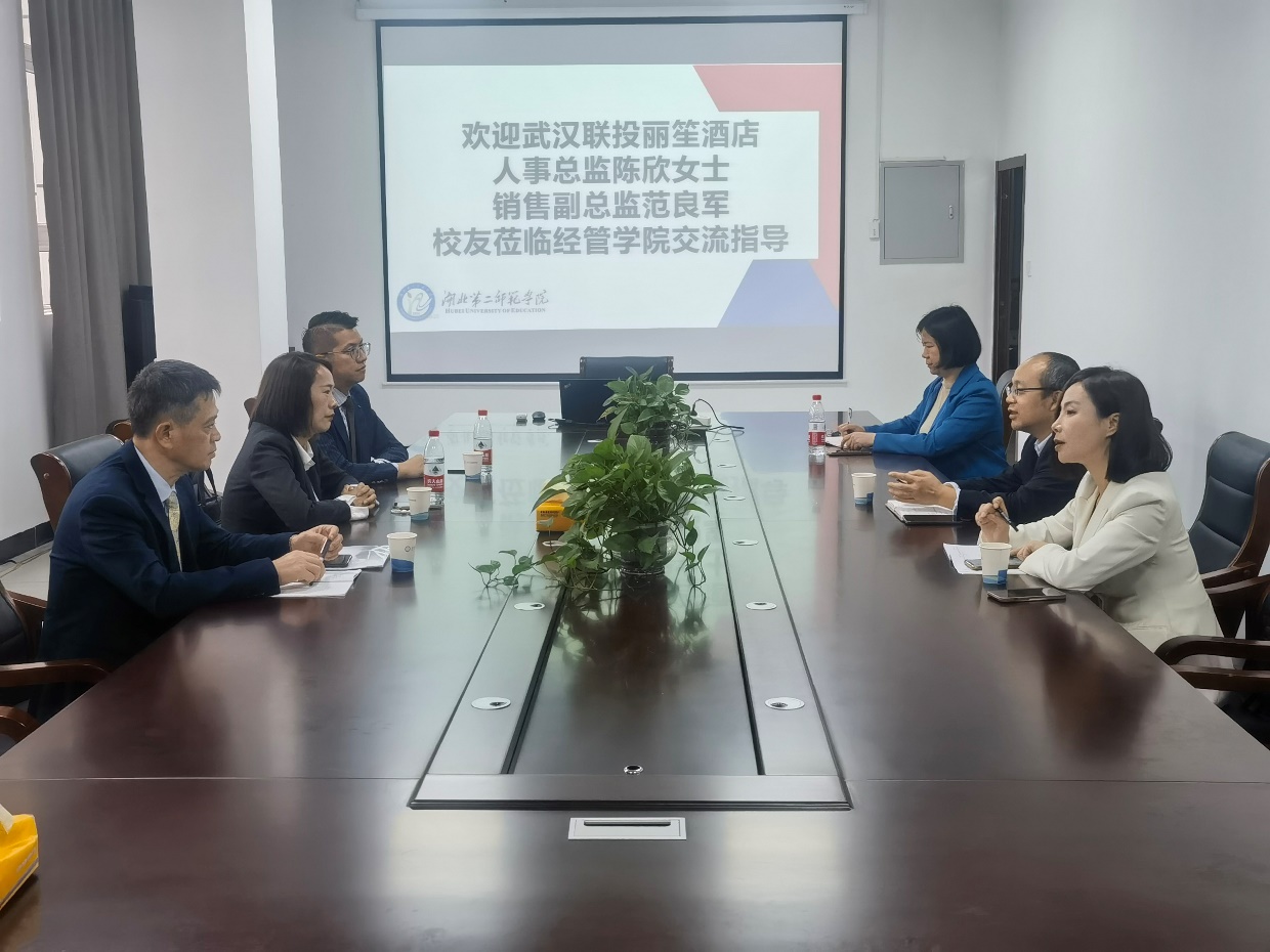 本网讯(通讯员 李丽霞)2023年10月25日下午,武汉联投丽笙酒店人力资源总监陈欣与市场营销部副总监范良军一行前来我院旅游与酒店管理系开展交流座谈活动。学校财务处王诗龙处长、经管学院陈艳明副院长、旅游与酒店管理系主要负责人以及20级酒店管理1班全体学生参加了此次活动。