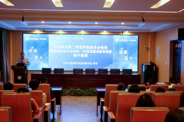 本网讯(通讯员 吕欣悦)10月31日晚,中共湖北第二师范学院委员会党校第40期预备党员、65期发展对象培训班第一次授课在经济与管理学院三楼学术报告厅举行。本次授课老师为经济与管理学院党委副书记李京老师,培训班全体学员参与此次培训。