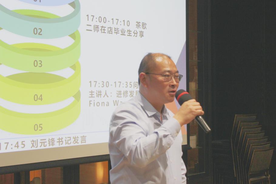 最后,我院党委书记刘元锋对本次活动进行了总结发言。刘书记对光谷凯悦酒店表达了诚挚的谢意,对酒店管理专业全体教师的工作成效表示了高度肯定。他讲述了我院与光谷凯悦酒店多年的合作历程,并展望了酒店管理专业未来的发展宏图。同时教育同学们要全面发展,努力提升人格素养,在职场上展现自己的光芒。