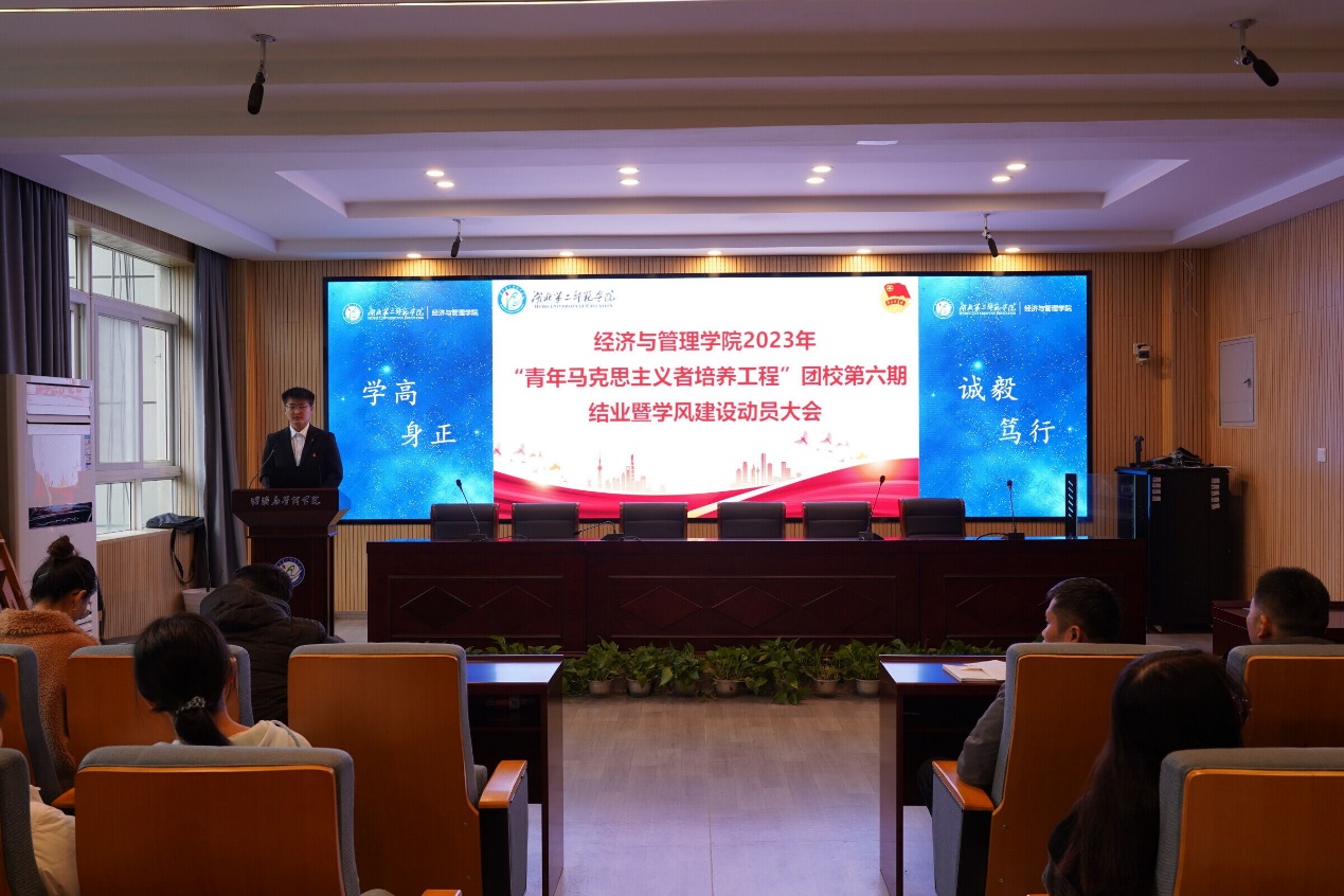 本网讯(通讯员 魏雪晴 陈美玲)11月30日中午,经济与管理学院2023年“青年马克思主义者培养工程”团校第六期暨“新起之秀”新晋学生骨干培训班结业典礼暨学风建设动员大会在二号楼报告厅举行。经济与管理学院党委书记刘元锋,党委副书记李京,学工办主任周慧东,团委负责人徐梅馨及全体辅导员出席,本次典礼由经济与管理学院分团委学生副书记李彦庆主持。