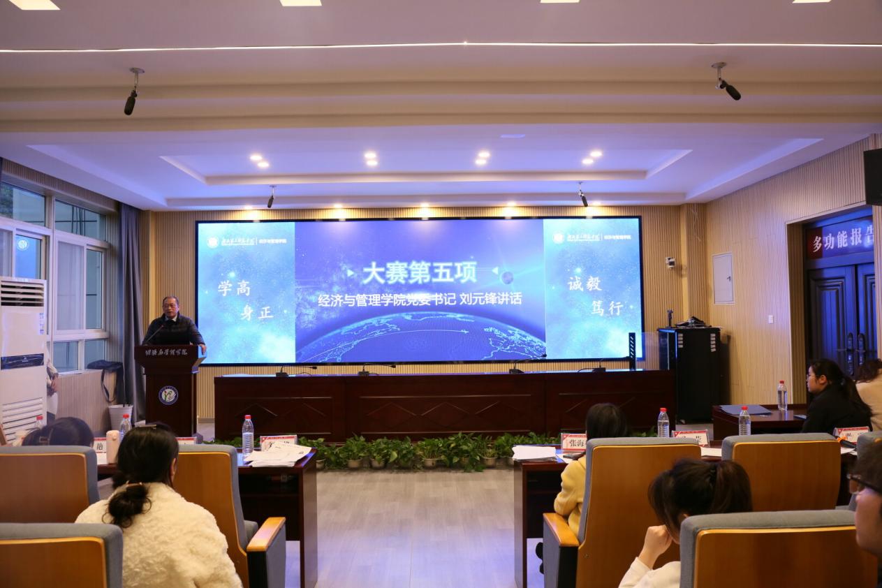 比赛结束后,刘元锋对所有参赛选手给予充分的肯定与鼓励,提出要科学合理地规划大学教育生涯和职业生涯目标,树立正确的成才观、就业观和职业规划意识,科学规划自己的职业生涯和学业生涯。他指出,我们要将本次比赛打造成强化生涯教育的大讲堂、促进人才供需对接的大平台、服务毕业生就业的大市场,通过以赛促教、以赛促学,进一步普及大学生职业生涯规划知识,指导大学生科学合理的进行大学学习和生活,不断促进经管学子更高质量更充分就业。(供图 汪雅雯 吴婷玉)