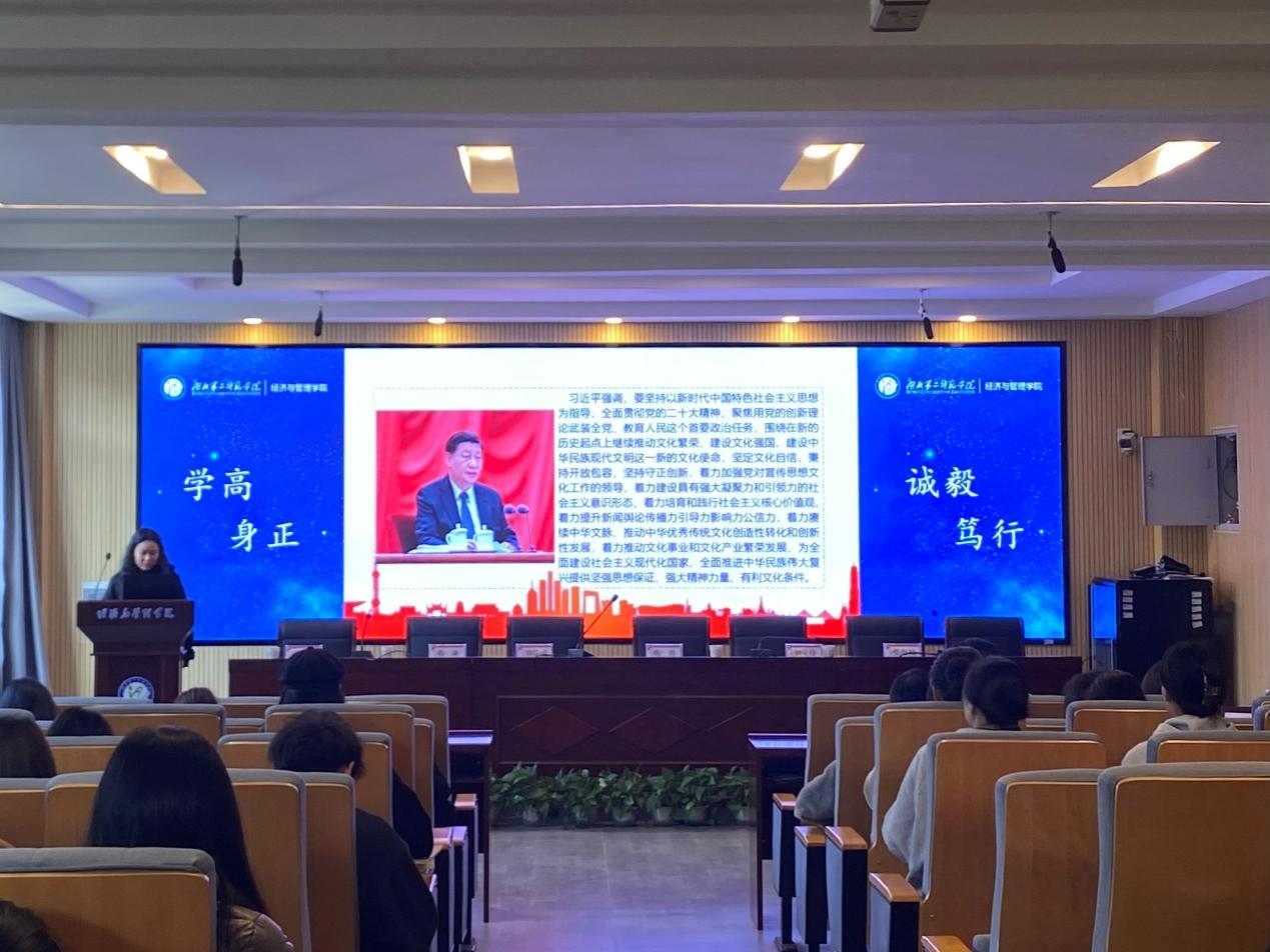 本网讯(通讯员 刘思羽)11月23日中午,经济与管理学院学生党支部在2号楼3楼多功能厅开展十一月份“增强历史自觉,坚定文化自信”的主题党日活动,支部全体党员参加。