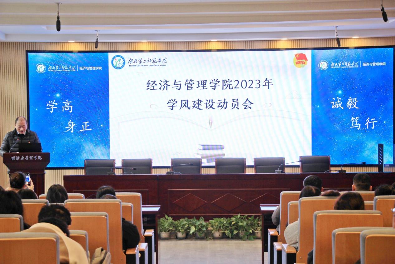 本网讯(通讯员 罗蒙蒙)11月30日下午,经济与管理学院在2号楼报告厅开展学风建设动员大会活动。经济与管理学院党委书记刘元锋,党委副书记李京,学工办主任周慧东,团委负责人徐梅馨和全体辅导员出席本次活动。本次活动由李彦庆主持。