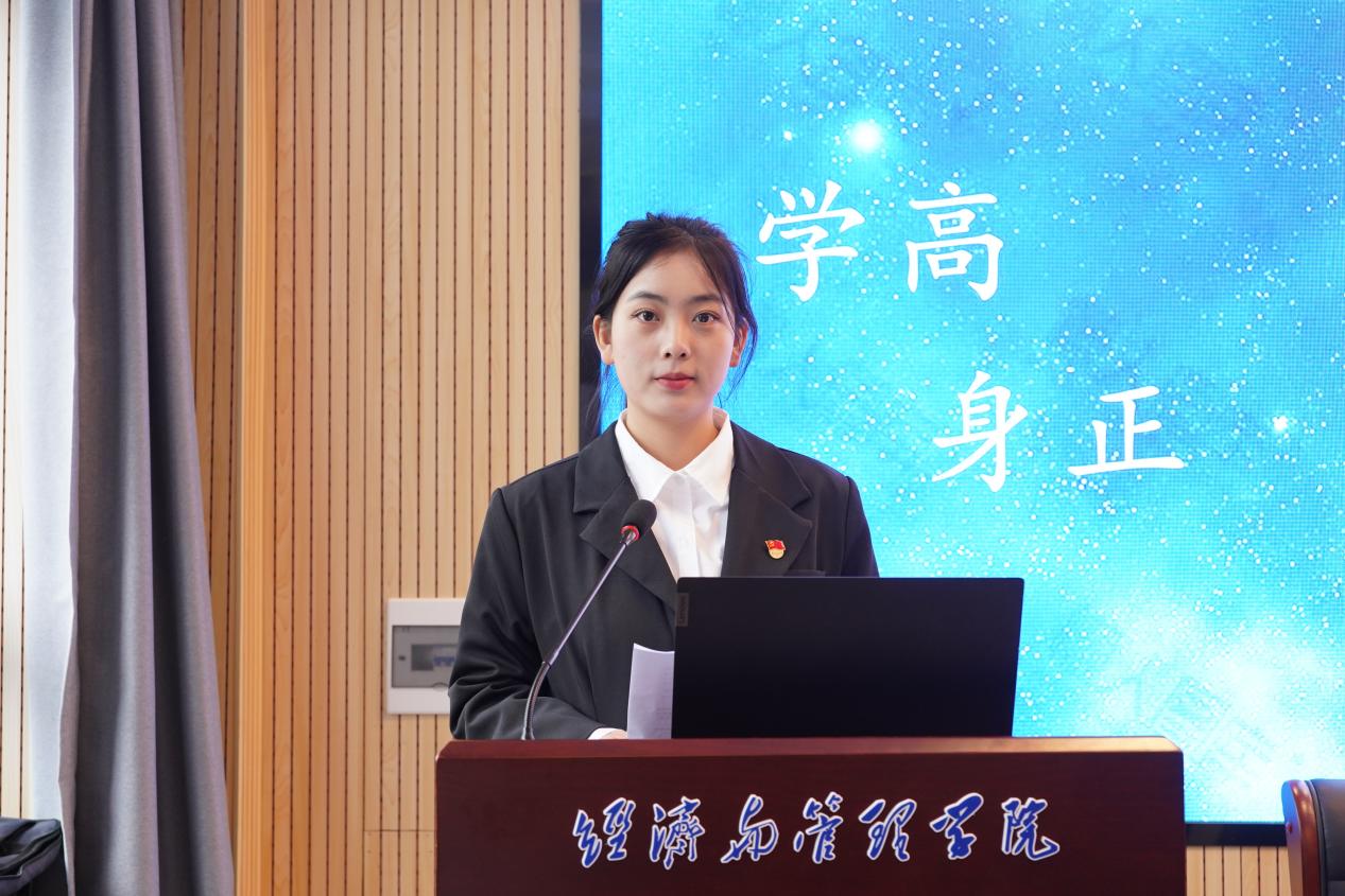 2022-2023学年国家奖学金获得者邢娜作为学生代表发言。邢娜同学表示,向下扎根,方能向上成林。她认为自己应当向下生根,笃行初心职责,强调向下植根,书写初心答卷。作为一名学生干部,她不断学习,追求进步,调整学习与工作上的平衡,锻炼自己的领导能力和执行能力。同时她认为,向上生长,方能成林。面对大型考试要保持一个良好的心态,注重身体健康,要有目的学习,在学习的过程中保持思考,学会提问,及时反馈并运用于实践。并向同学们强调,大学学习永远没有标准答案,不必执着去找最优解,每个人都是被精心雕琢的“艺术品”,重要的是我们自己该如何定义精彩。