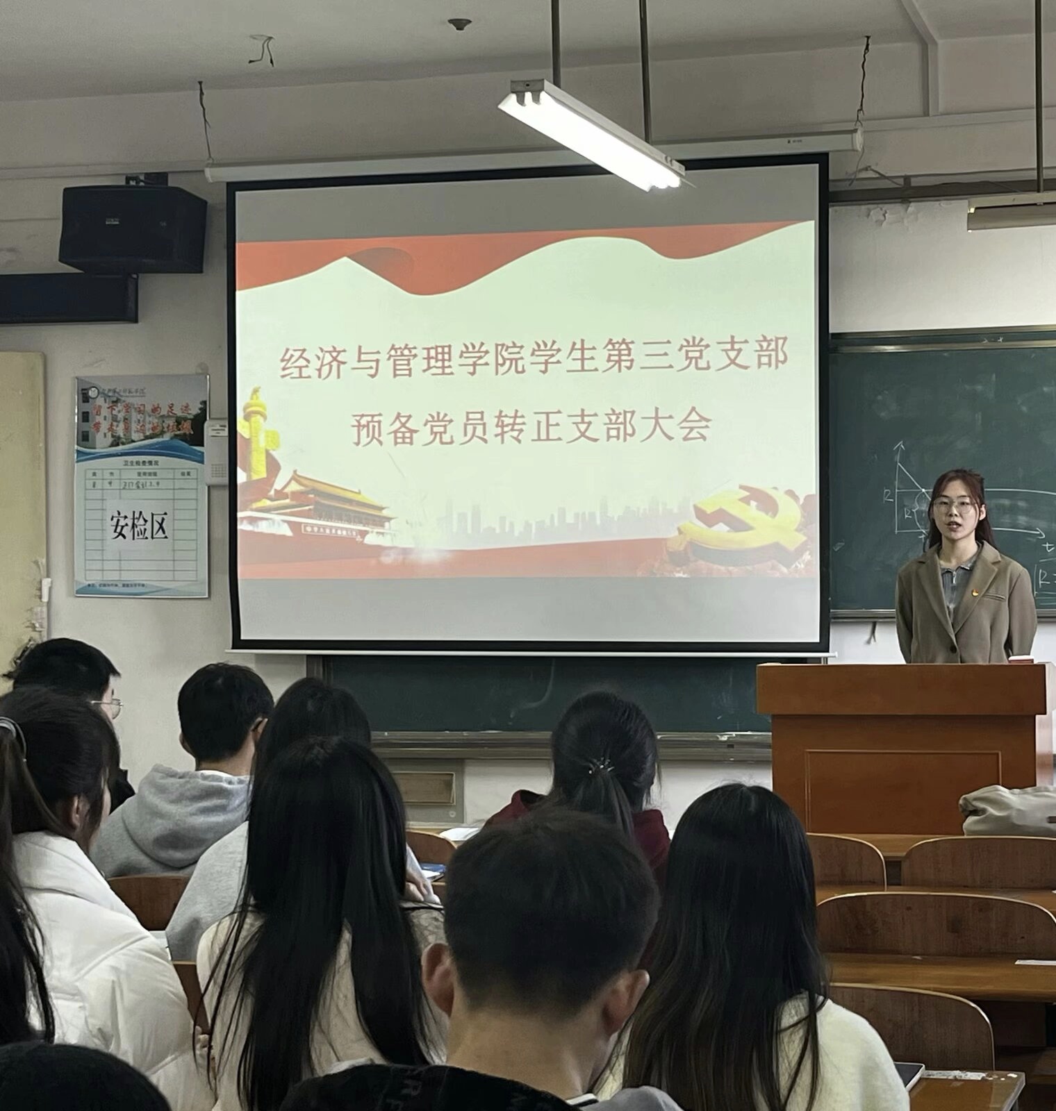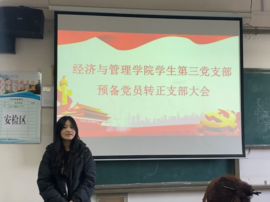 本网讯(通讯员 钟雨桐 陈嘉琦 刘思羽)12月7日下午,经济与管理学院学生第一党支部、学生第二党支部、学生第三党支部预备党员转正大会分别在2301、2302、2303教室召开,各党支部书记分别主持,支部全体党员参加。
