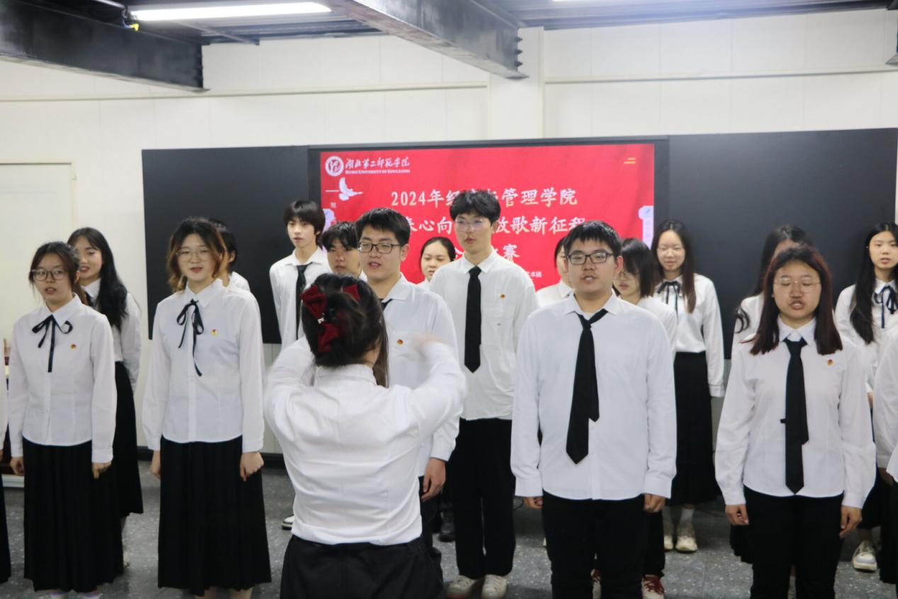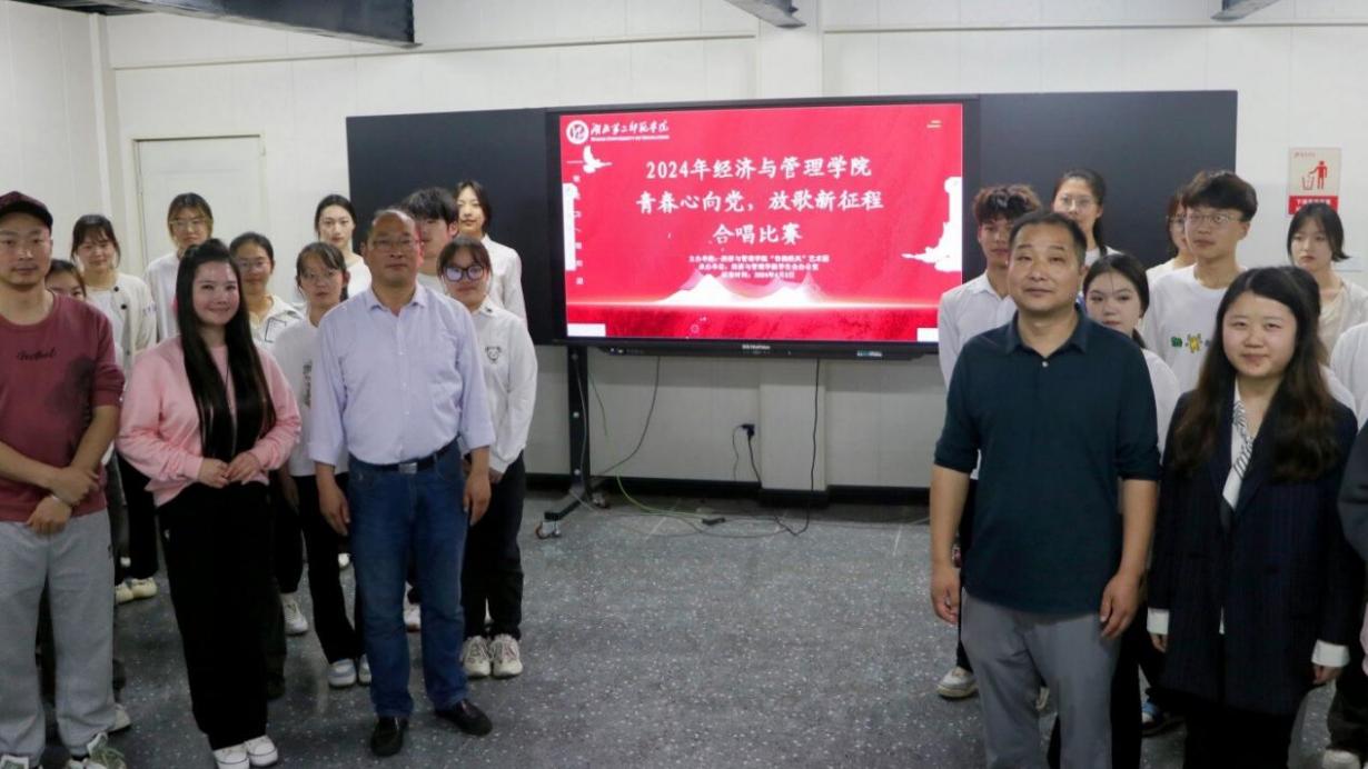 本网迅(通讯员 汪雅雯 潘雨馨)为学习贯彻党的二十大精神,继承和弘扬“五四”精神,展现我院学子踔厉奋发、勇毅前行的使命担当,4月2日晚上,经济与管理学院“谷韵经风”艺术团在艺术学院文创中心开展“青春心向党· 放歌新征程”合唱比赛。院党委书记刘元锋、党委副书记李京、团委负责人徐梅馨和艺术学院副教授马玉江、贺丹,专任教师王力、吴凡担任评委老师。经管院学生会主席团成员、部长代表以及2023级11个班级参加。本次比赛由23级国际与贸易1班沈宇桐主持。